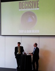 The nature of professional speaking seems to be changing.Decisive is the new book by the Heath brothers. I saw Chip at Rotman last week. I already watched Dan's book launch webinar (see the WRAP on Decisive) and listened to Chris Brogan’s interview. Dan Pink interviewed both brothers on Office Hours. That's enough. I’ve got the book. My next step is to read it and apply the lessons.