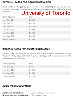 - $8/hour for internal groups including audio-visual equipment (seats 80)